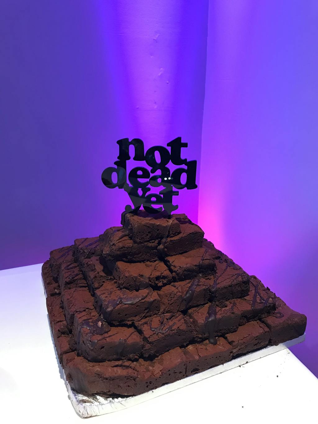 Dies zählt vielleicht nicht offiziell zu Ihren 5 am Tag, eher zu 55!!, aber wir würden nie behaupten, es sei ein Gemüse. Dies sind 55 köstliche, himmlische Brownies, die geschickt zu einem Berg geformt wurden. Präsentiert und mit Schleifen umwickelt, um ein äußerst gutes Herzstück für eine große Feier zu sein. Hinzu kommt die Tatsache, dass es bis zu 55 Personen satt macht und nicht nur satt macht.