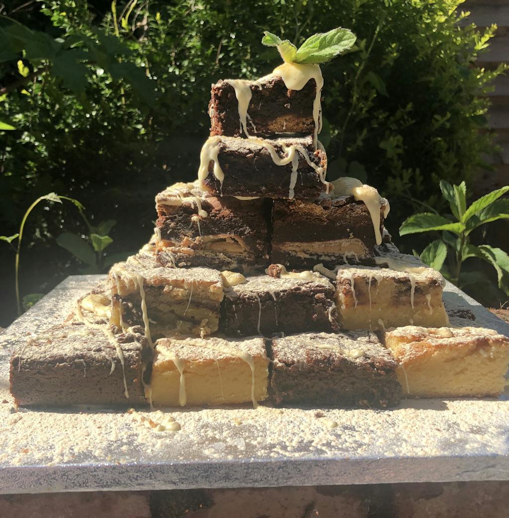 Die kleinen Blümchen werden gebacken, dann in Quadrate geschnitten und zu einem schönen Berg geformt. Dieser wird einfach nackt und ohne Überzug serviert und lässt sich leicht verteilen – Vorsicht vor diesem puren Genuss. Die Brownies werden in Form einer Pyramide gestapelt und ergeben bereits portioniert einen wunderbaren Kuchen, der eine tolle Alternative zum üblichen Kuchen darstellt. Noch besser ist, dass es aus einer Menge dunkler belgischer Schokolade, belgischer Milchschokolade oder weißer Schokolade Ihrer Wahl besteht.