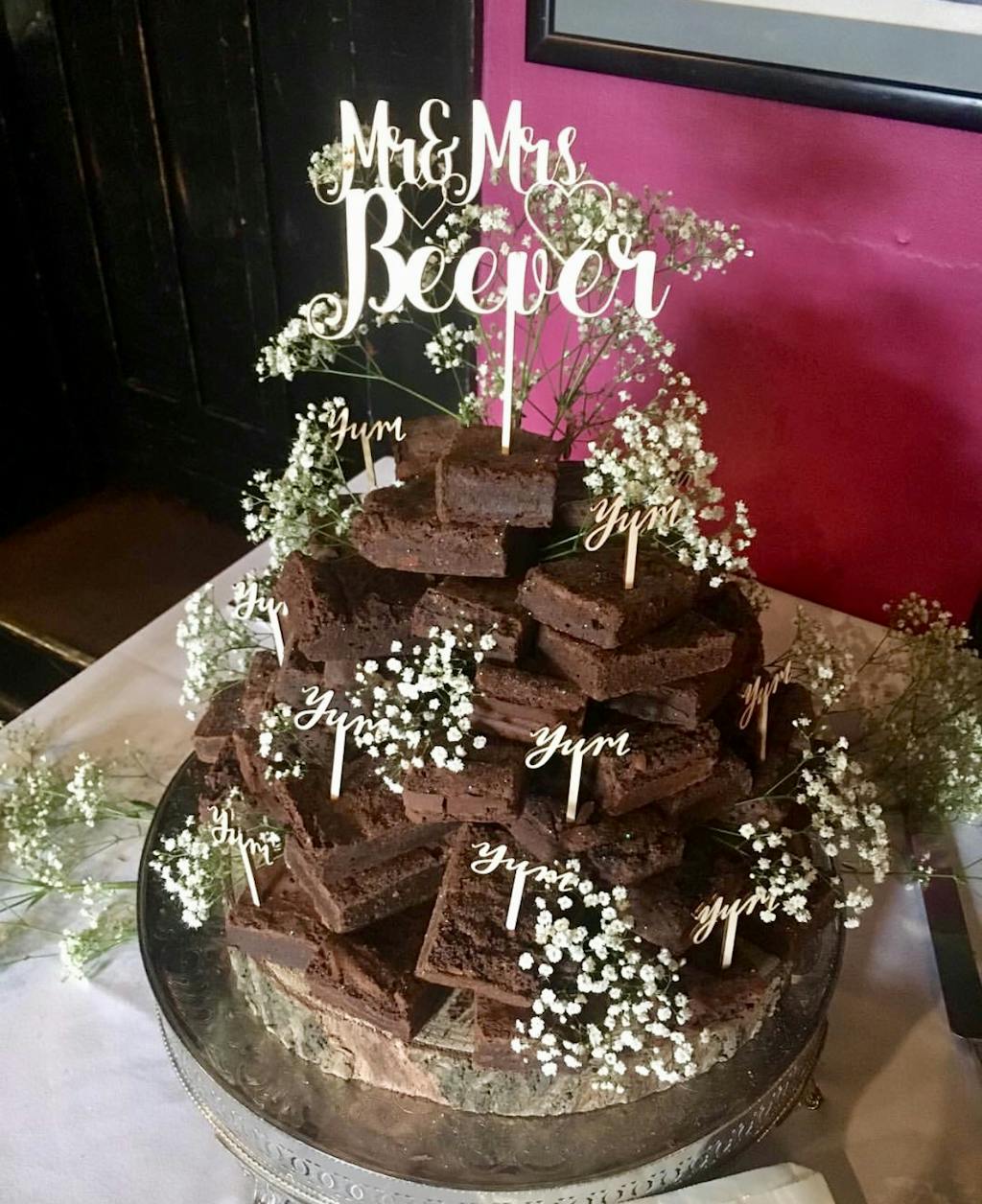 Das sind 93 köstliche, göttliche Brownies, die geschickt zu einem Berg geformt wurden. Präsentiert und mit einem Band umwickelt, ist es ein äußerst gutes Mittelstück für eine große Feier. Hinzu kommt, dass es bis zu 93 Personen verköstigt und nicht nur satt macht.