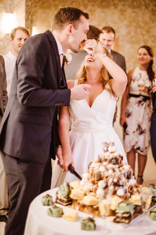 "I just wanted to say a huge thank you to you and to the chef for putting together such a wonderful wedding cake! We had so many lovely compliments about it on the day, with people saying it's the best wedding "cake" they have ever tasted. And it really was delicious! And it looked incredible too! The portion size was quite generous and so guests were able to take some home with them as well which they were very pleased about! And we have some that we froze and are still enjoying!" Hannah & James September 2021